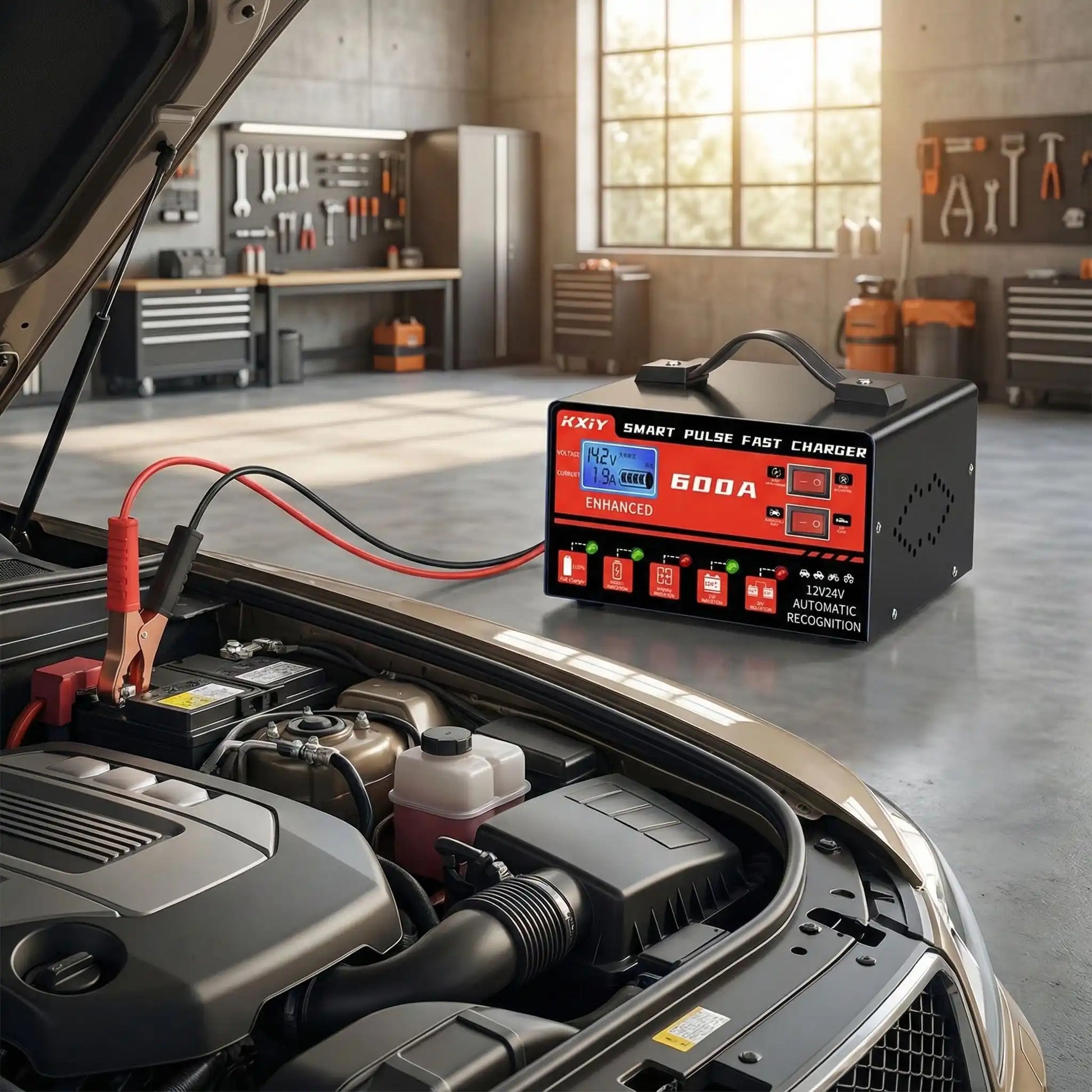 Contrairement aux chargeurs traditionnels, notre chargeur de batterie voiture intègre un écran LCD numérique qui affiche en temps réel l'état de votre batterie. Compatible 12V et 24V, il délivre jusqu'à 600A pour redémarrer rapidement votre véhicule.